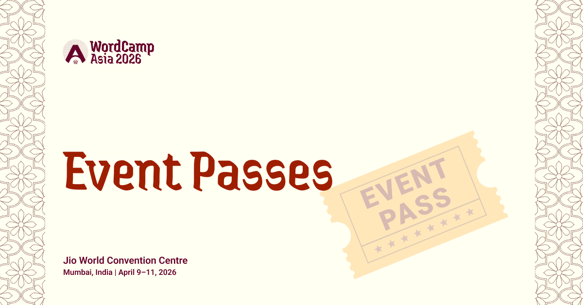 Event passes are now available for WordCamp Asia 2026, happening in Mumbai, India, from 9–11 April 2026. Join thousands from the global WordPress community for three days of learning, collaboration, and celebration.